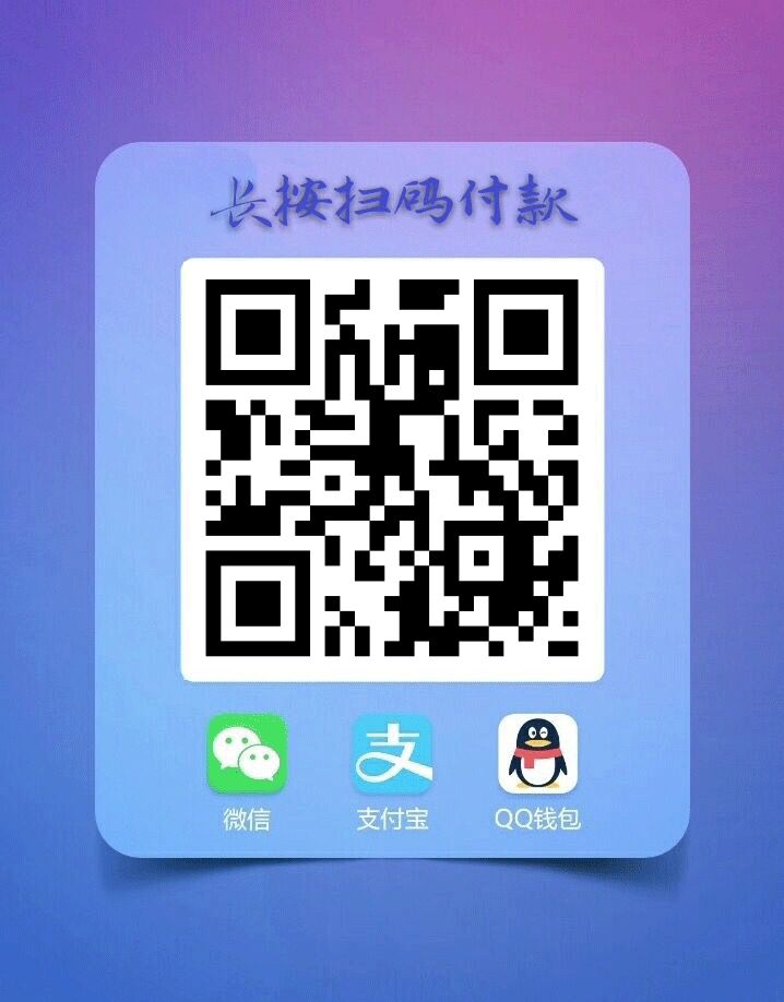 4.为什么微信、QQ扫码后还需要长按识别?微信、QQ接口未开放权限,无法直接调起微信、QQ转账页面,所以需要长按识二维码别进行转账。(给您带来不便还请谅解)目前支付宝接口已开放权限。可以直接扫码付款。